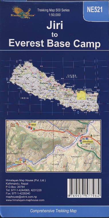 NE 521 Jiri to Everest Base Camp. Maßstab 1:50.000 Doppelseitig! Die ansprechende Alternative zum Flug von /nach Lukla. Der Trek führt durch eine schöne Kulturlandschaft und Wälder. Allerdings geht es ganz schön hoch und runter. die Karte ersetzt die alte NE 508 Jiri KArte. Sie wurde mit Informationen, die ich im Dezember 2013 auf eine Trekkigntour gesammelt habe aktualisiert. Jetzt sind ncoh viele , zum Teil eher kleine und einfache Lodgen dazugekommen. Aber so kann man am nachmittag viel besser einschätzen ob man noch ein stück weitergehen kann oder doch aufhören muss. Die Karte ist doppelseitig bedruckt und auf der Rückseite ist das ganze ober Khumbu dargestellt. Dies entspricht den Karten NE 517 und NE 519 . Auch wenn man eigentlich über Lukla zu fliegen, so hat man mit dieser Karte nicht nur das ganze Khumbu sonder kann sich bei Schlechtwetter ohne Flüge auch schnell umentscheiden und über Salleri oder Jiri herauslaufen. Diese Karte ist vollständiger als die beiden Karten des Nepal-Kartenwerks 2 & 5 zusammen. Rückseite der Karte Ansehen in amazon