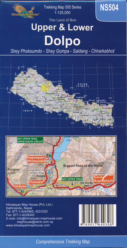 NS 504 upper & lower Dolpo .Rückseite der Karte Ansehen in amazon Maßstab 1:125.000, Die Karte zeigt das ganze Dolpo Gebiet von Shey Phoksumdu im Westen bis zum Tal des Kali Gandaki im Osten. Er zeigt die untere und obere große Dolporunde