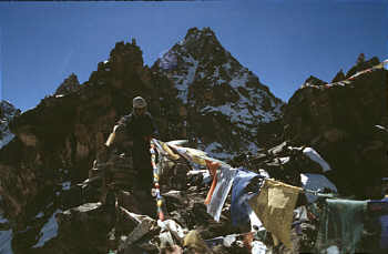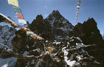 Wie immer in Nepal werden als Dank für die Götter oben am Pass Gebetsfahnen aufgehängt. als wir diese sahen wussten wir wo wir über den zerklüfteten Grat hinübergehen würden