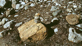 Hier ein Steinmännchen aus sehr gelben Steinen- es hängt aber von Bildschirm ab, ob man die Farbe wirklich sehen kann.