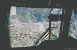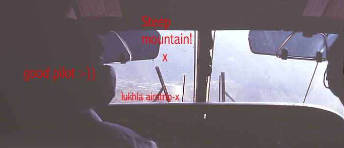 gleich in Landeanflug auf Lukhla wieder nach rechts zu drehen. Leider sind die Plexiglasfenster fast immer etwas zerkratzt.