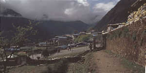 Das ist die Richtung in die die meisten Trekker sehnsüchtig kucken werden. Denn im Tal des Duth khosi gehts die nächsten zwei Tage hoch um dann Namche Bazar, das Hauptdorf des Everestgebietes