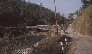 Jetzt ging die Straße wieder herab herunter zum Fluss Tamba Kosi. Nach dessen Überquerung hofften wir auf weniger Problem, da wir dann im Gebiet der