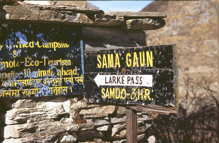 In Sama gab es drei Gästehäuser und zwei Campingplätze. Den hier starten und enden im allgemeinen die Expeditionen zum Manaslu. Wenn die ausgehungerten Expeditionsteilnehmern nach einigen Wochen wieder runterkommen plündern sie regelmäßig alle Biervorräte des ganzen Dorfes. Der Bergsteiger Dieter Porsche erzählte mal wie sie nach einer erfolgreichen Besteigung des Manaslu nicht nur alles Bier aus Sama , sondern aus dem ganzen oberen Tal versoffen hatten. Für die andere Expedition , die einen Tag später runter kam, blieb nur noch Mineralwasser und Cola übrig....