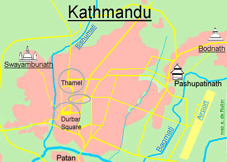 Kathmandu wurde wahrscheinlich im zehten bis zwölften Jahrhundert nahe dem kleinen Fluss Bishumati gegründet. Noch 1981 lagen auf der anderen Seite überwiegend Felder und wenn man zum