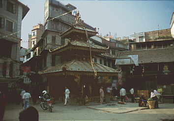Der Akash Bhairava Tempel. Links davon geht die Makhan tol zum Durbar-Platz