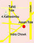Die Straße die von Indra Chowk zum Assan Tole geht ist eine der am stärksten besuchten Einkaufsstraßen. Dicht an dicht drängen sich die Leute und verzweifelnd hupend probieren Rikschas und Motorräder sich