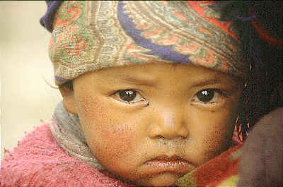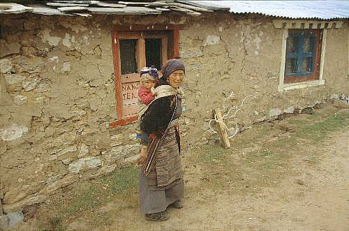 Diese Frau betreibt das letzte Teehaus auf dem Weg zum Nangpa la, hier trägt sie gerade ihre Nichte