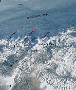 Weltraumbilder von Nepal, Tibet und dem Himalaya.