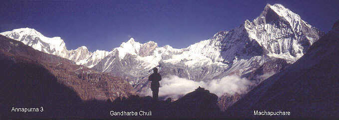Die Annapurna 3 liegt zwischen annapurna 4 und der Gangapurna. Von jedem Blickwinkel sieht sie wieder vollständig anders aus. Sie ist 7555m hoch.