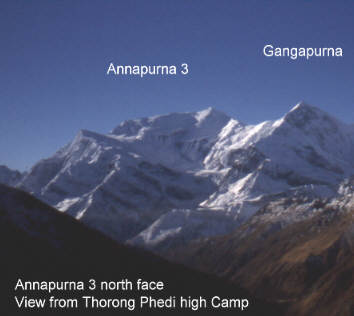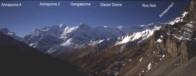 Die nordseite der Annapurnakette, rechts sieht man den Grat der vom Roc noir zur Annapurna 1 geht