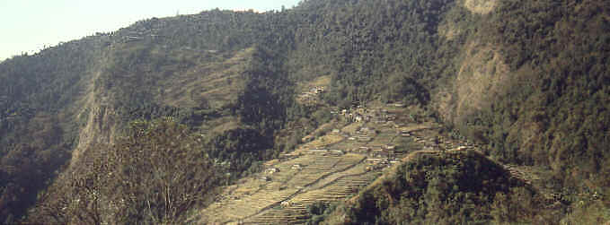 Chomrong, von ganz rechts unten bis links oben zieht sich dass Dorf Chomrong