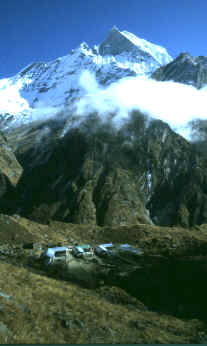 Machapuchare Base Camp übernachten sollte. Da das ABC auf 4130 liegt, können schon ernsthafte Probleme auftreten. Lesen sie bitte hierzu auch das Kapitel auf der Seite Gesundheit. Meines Wissens ist hier aber im Gegensatz zum