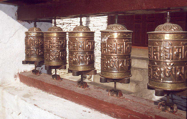 Die tragbaren kleinen Gebetsmühlen werden noch immer von vielen Leuten mitgenommen und durch eine leichte