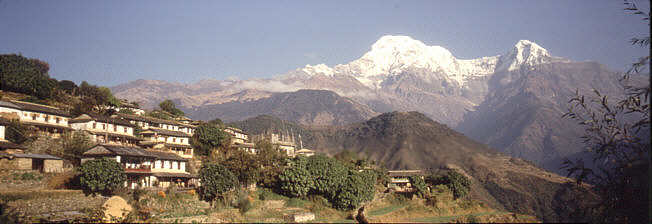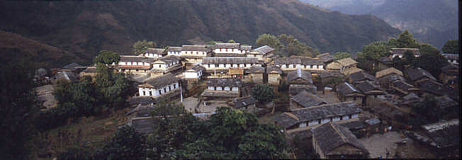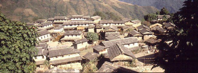 Eher untypisch liegen hier die Gurungdörfer konzentrisch in einem Haufendorf