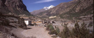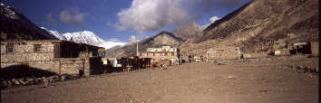 staubigen Platz an dessen Seiten bis zu dreistöckige Gasthäuser stehen. als ich 1981 hierher kam vermieteten gerade mal 3 Häuser zwischen 1 und 3 Zimmern und in ganz Manang gab es nur eine Decke. So verändern sich die Zeiten. Wenn Sie