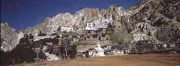 Aklimatisierungstages einen Ausflug zurück machen. Es ist ein Dorf im typisch tibetischen Stil mit den verschachtelten Flachdachhäusern. Oben an einem Felsrücken gebaut ist das mehrere