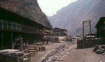 Lodgen und den vielen Läden für den täglichen Bedarf der Bewohner, die weiter oben im Tal leben. Hier kommen die ganzen Waren mit Lastwagen an, und werden danach mit