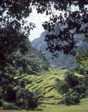 ersten harten Anstieg nach Bahundada zu gelangen. Noch ist das Tal weit, es ist warm und auf den Feldern wächst der Reis. Im Oktober gibt es die köstlichen kleinen grünorangen Mandarinen, die hier Suntalas