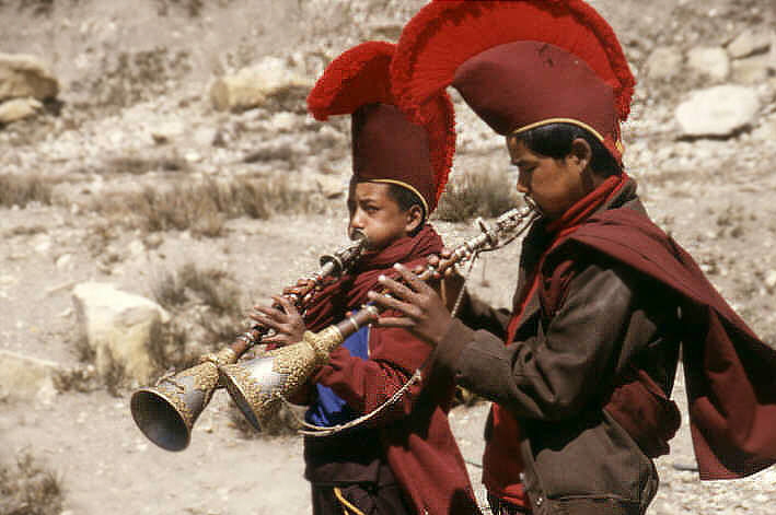 Gebetsbücher und an verschiedenen Stellen warteten schon die Mönche mit Ihren großen Trompetenhörnern.