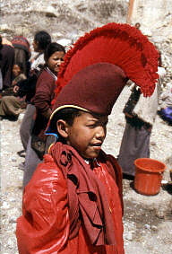 Stellen warteten schon die Mönche mit Ihren großen Trompetenhörnern.