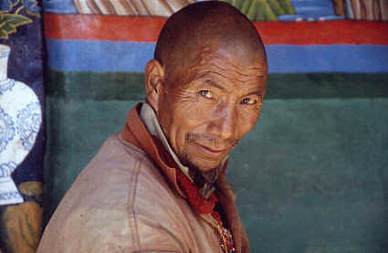 Der kleine Mönch zeigte uns recht stolz, wie ernsthaft er seine Studien betreibt und las uns aus den Texten vor