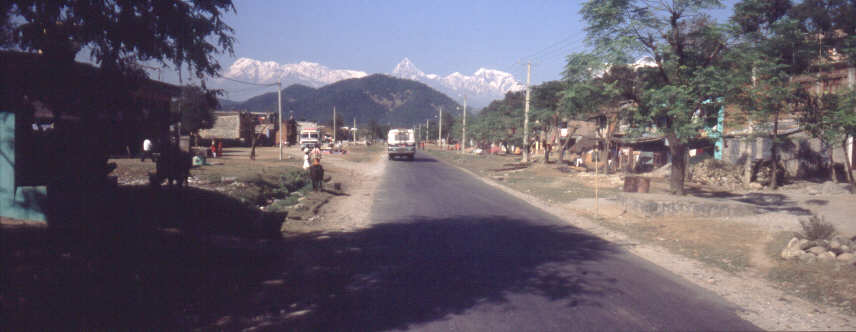 Schon eine Weile vor Pokhara sieht man die überwältigenden Berge von der Annapurnagruppe