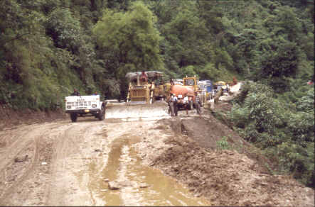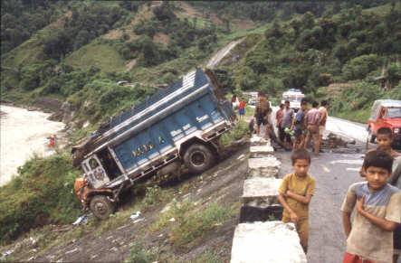 zwischen Kathmandu und dem Rest des Landes für mehrere Tage unterbrochen. Selbst wenn man mit Planierraupen einen Weg freigeschaufelt hat, stauen sich die Fahrzeuge über Kilometer und manchmal braucht