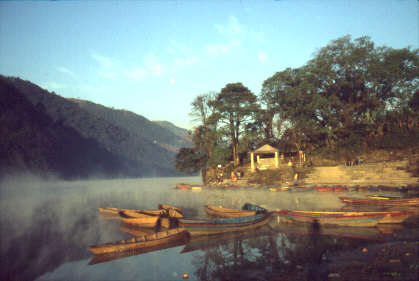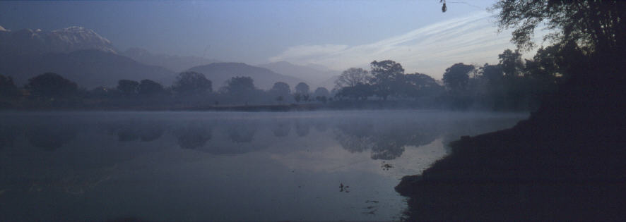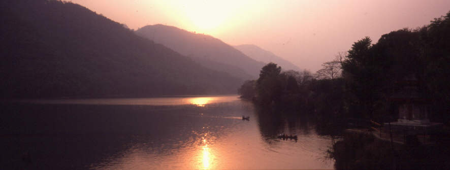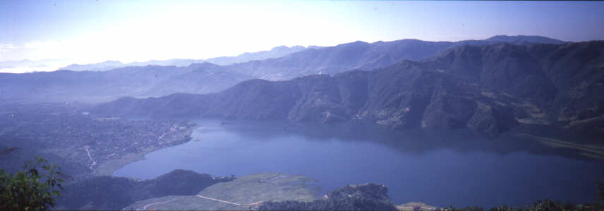 Von Sarangkot kann man Richtung südosten auf den See und Pokhara heruntergucken. Die lakeside befindet sich