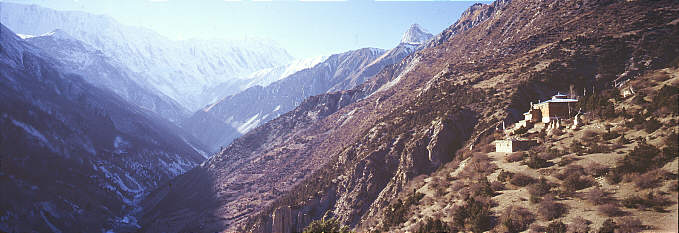Das Dorf Khangsar auf 3700 m. im Hintergrund sieht man die Grande Barriere