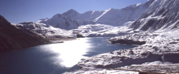 Die Gletscher des Tilicho gehen bis in den See hinein