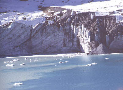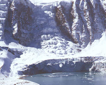 der Weg über den Gletscher mit vielen Spalten. Man würde deshalb ein Seil, Steigeisen und alpine Erfahrung benötigen. ich habe überdies auch mal eine Lawine gesehen, die bis zum See heruntergegangen ist.
