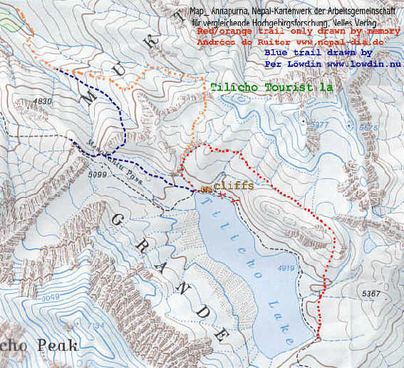 Die erste ist wenn wenn man erst Richtung Mesokanto la geht und dann einen Weg nördlich einschlägt. Dieser ist in Per Lövdins Seite Tilicho Lake beschrieben