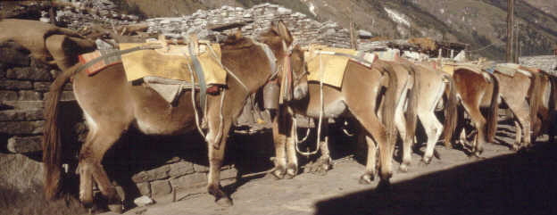 eine Maultierekaravane wartet darauf, beladen zu werden