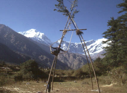 Im Oktober werden zum Dassainfest überall im Land die großen Ping Schaukeln aufgebaut. Da sie nur mit Grasseilen verbunden werden, halten sie aber nur einen Monat.