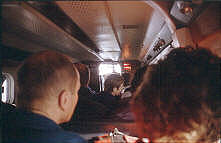 Flug ist wiederum ein Erlebnis, es ist wie in den guten alten Zeiten der tollen Kisten, und man kann durch den Spalt der Türe hindurchsehen, während man knapp über die Hügel huscht.