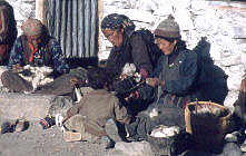 späten Nachittag weniger wird setzen sich die Frauen an eine sonniges Plätzchen und spinnen Wolle.