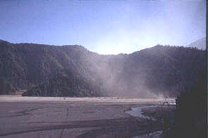 den heftigen Winden, die staubbeladen durch das Ta l fegen.