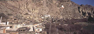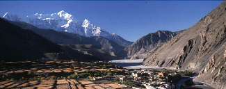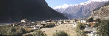 bereist werden, so dass es ein teures Unternehmen ist. Der südliche Teil heisst Lower Mustang und ist freies Treckinggebiet. Im Bild sieht man den Blick von Kagbeni in den oberen Mustang. Man erkennt das trockene