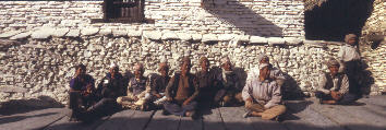 Die Männer von Marpha sitzen am Abend vor den