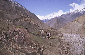 Ein besonders interessantes Dorf liegt versteckt in einem Seitental zwischen Jomsom und Kagbeni. Die Bewohner sind Anhänger der ursprünglichen tibetischen Bön-Religion und so findet man dort auch ein Bön