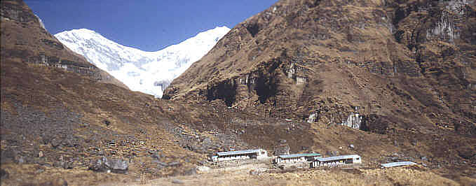 From Chomrong the trail leads through a narrow valley to the Annapurna sanctuary. You will not find any more villages. It takes normaly 3 days to go to the ABC. Some people take