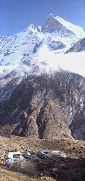 Nepal, Trekking around Annapurna, on the way to Annapurna sanctuary and Annapurna Base Camp, Hinko Cave, Machapuchare base camp