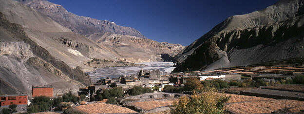 Kagbeni is situated in the valley of the Kali Gandaki, This river is one of three who cross the Himalayas. The Kali Gandaki was one of the major trading routes between Tibet and