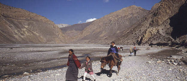 The Kali Gandaki between Kagbeni and Jomsom. From Kagbeni to Kalopani there will be nearly every day a strong and dusty wind blowing up the valley. so its a good idea to stay