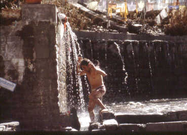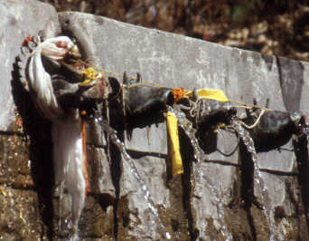 Around the Vishnu temple there are many fountains fed by a holy water source. Pilgrims walk under them, even when its freezing cold.