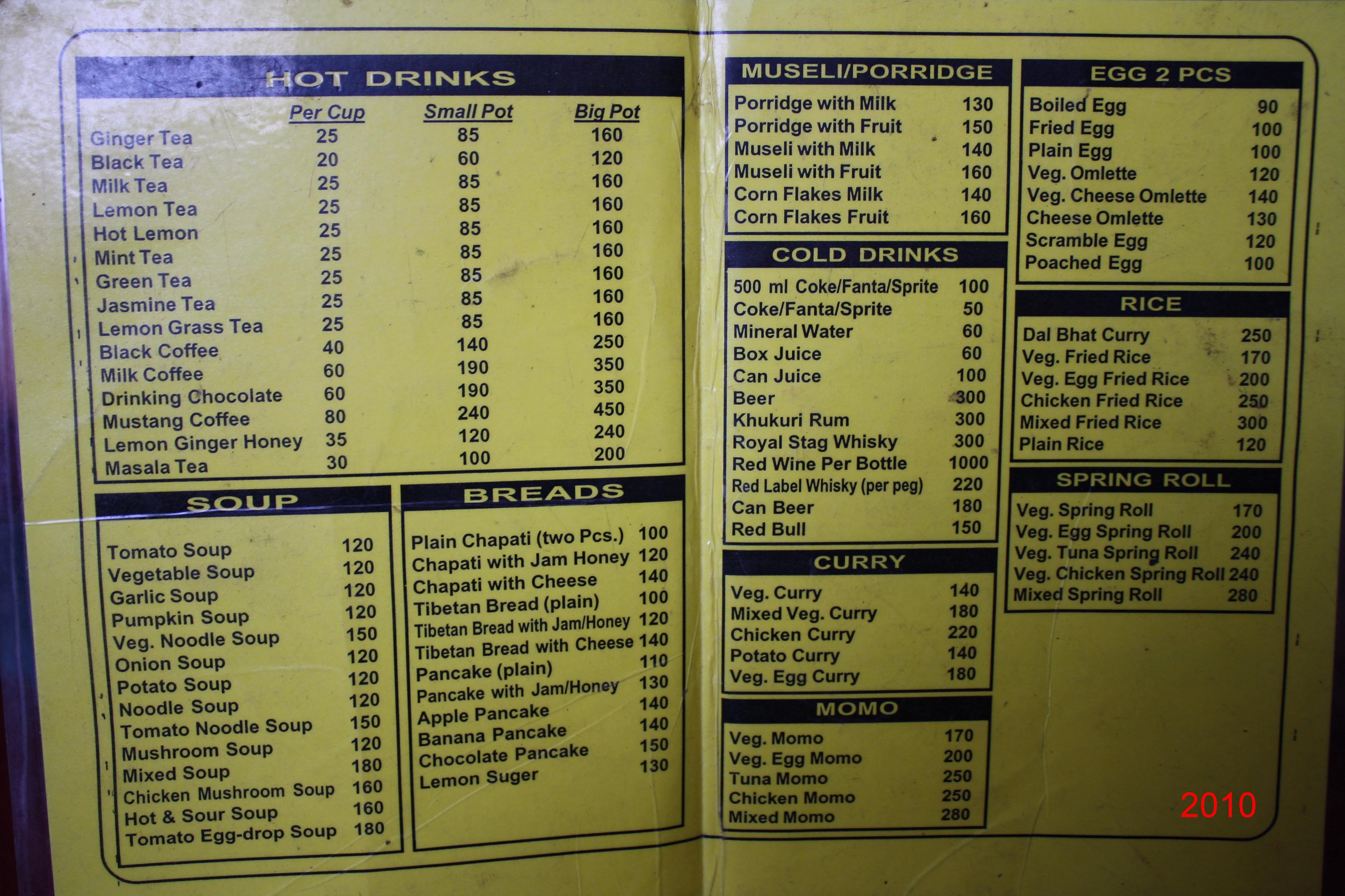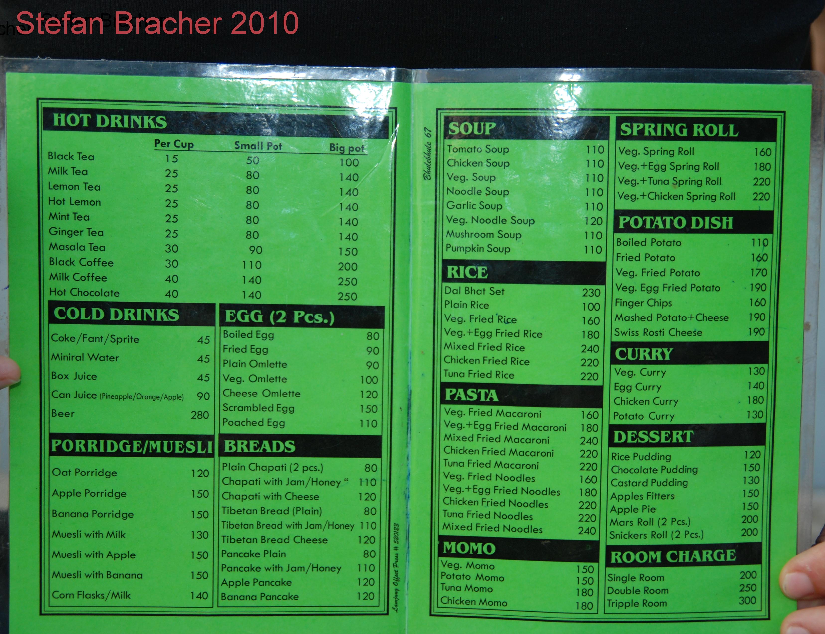 Ab 2010 würde ich gerne regelmäßig Fotos von Menükarten aus den verschiedenen Trekkinggebieten auf meiner Webseite veröffentlichen. Denn dann kann jeder sich ein Bild machen, wie viel er ungefähr