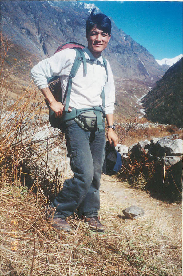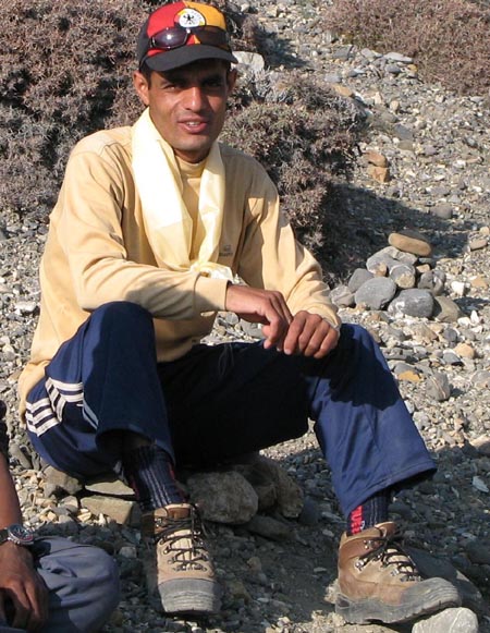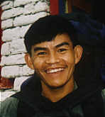 Karma ist 1987 geboren. Er ist ein Tibeter, lebt mit seiner Mutter in Marpha und arbeitet als Porterguide, hauptsächlich im Annapurnagebiet. Karma hat auch schon die Touren zu den Gipfel organisiert und geführt. Er ist mit uns in April 2004 der Jomsom/Muktinath Trek gegangen. Er kennt hervorragend das Annapurnagebiet und sehr viele Leute auf dem Weg. Letzt endlich ist er dort großgeworden. Dank ihm haben wir viele interessante Menschen und viele interessante kleinen Dörfern kennergelernt. Er war immer sehr loyal, freundlich und sehr taktvoll zu uns. Karma ist ein außergewöhnlicher und sehr intelligenter Mensch, der nie in seinem Leben einfach hatte. Sein Englisch ist sehr gut. Eine Tour mit ihm können wir nur empfehlen. Seine eMail ist. kartsewang@yahoo.com 17)